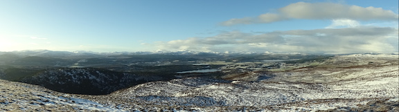 So it was off up a rather slippery Achue road, across the moors to the summit of Cnoc Dubh Beag (the small hillock), then wading through the snowy landscape up to the trig point at the top of Creag a’ Bhealaich (crag of the pass) – of which there are several in Scotland, ours being the smallest. The sun was shining, it was very frosty and the air was fresh and clear. On the tops the views were stunning, though there were clouds gathering in the west. A reminder if ever we need it, that we do live in a most beautiful part of the world.