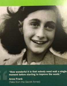 On Thursday evening those who attended the latest ERICG meeting were each asked to reflect on a different quotation from the remarkable diary written by this young Jewish girl whilst in hiding from the Nazis. The presentation, with few spoken words needed, relied on emotionally powerful video clips of current victims of oppression and prejudice, in the form of anti-semitism, homophobia, and bullying of those perceived as ‘different’, interspersed with photos of Anne and her life: a normal young girl, leading a normal life…. until the day her family had to go into hiding.
