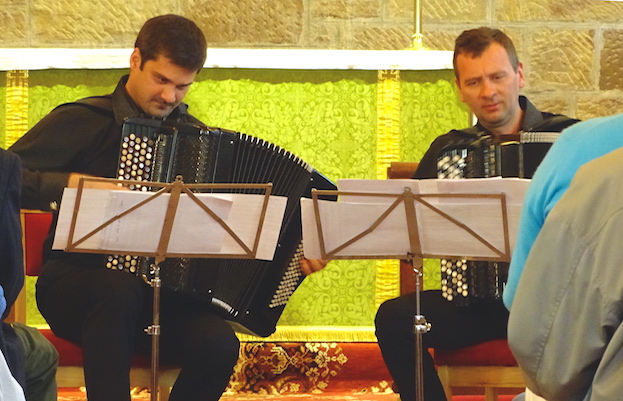 Another WOW of a concert from our friends the KYIV Classical Accordion Duo from the Ukraine. A sizeable audience heard pieces by: Vivaldi, Mozart, Bach, Greig, Saint-Saëns, Borodin, Piazzolla and Anderson in a concert entitled “Round the World in 80 Minutes”.