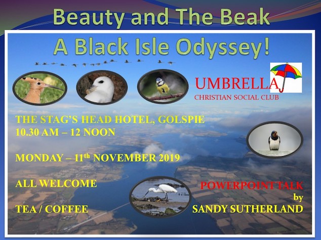 “Umbrella” is a non-denominational Christian social group who meet each Monday, 10.30 – 12 O’clock at The Stag’s Head Hotel on Main Street in Golspie.