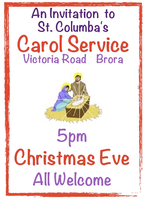 Brora Carol Service 10/12/2019 sheumais Notices, Services Christmas Eve Carol Service at St Columba’s Brora at 5pm Share this: Click to share on Facebook (Opens in new window) Facebook Click to share on X (Opens in new window) X Click to email a link to a friend (Opens in new window) Email More Click to print (Opens in new window) Print Like Loading...