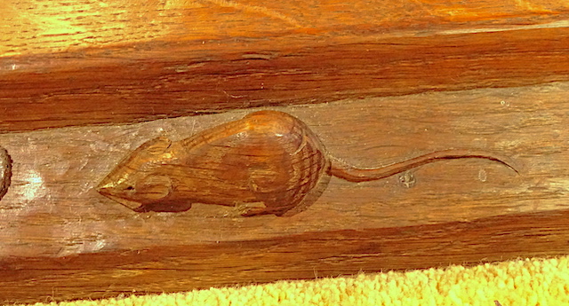 In 1936 Robert [Thompson] installed the reredos, and his work on these is always worth examining closely. At the same time he fitted the altar rails, and what better tribute to him can be found than that from a Kent lady who tells me that she never passes through Tain without popping into St Andrew’s Church to see ‘the neat little mouse carved under a rail.” A lengthy enough mouse-hunting journey for anyone!