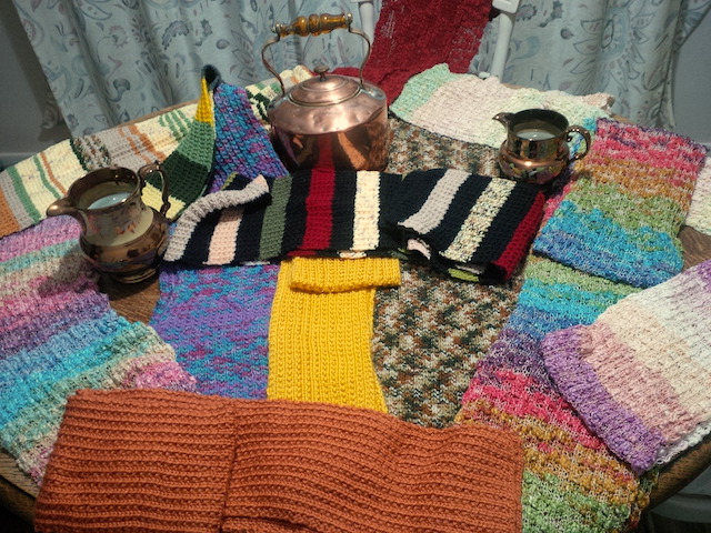 When Renate died she left a stock of knitted scarves “with patterns and colours not always matching, but still making a beautiful picture”.