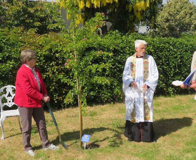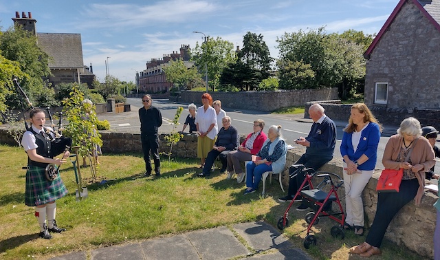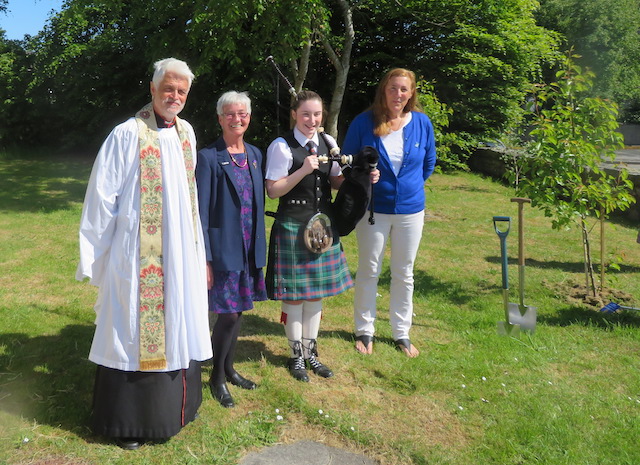 This afternoon at St Columba’s, the outgoing President of East Sutherland Rotary (Linda Graham), in incoming President (Elizabeth Sweetman) and Her Majesty’s Lord Lieutenant for Sutherland (Monica Main) planted trees for Ukraine, World Peace and Her Majesty’s Jubilee respectively.