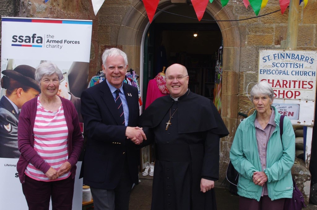 COVID forced the closure, for a while, of St Finnbarr’s Charities Shop, in Dornoch, but the shop’s dedicated team of volunteers have quickly resumed their remarkable fundraising work! This year, once again, St Finnbarr’s has made a generous donation to the work of SSAFA Sutherland. SSAFA (The Soldiers, Sailors, Airmen and Families Association) is a UK-wide organisation which helps serving and retired Armed Forces personnel and their families in time of need.