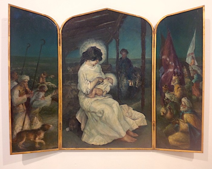 In that, Mary is depicted in the stable, feeding her child so discretely that you’d hardly notice.