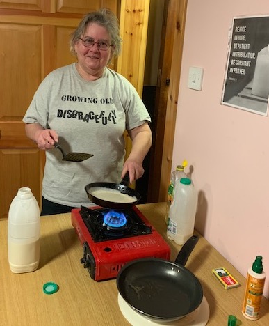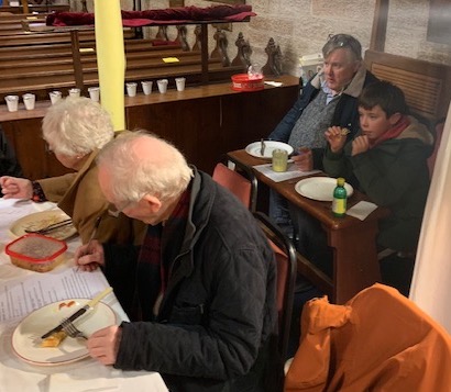 … but yesterday was Shrove Tuesday and we held our annual Pancake Party and Quiz yesterday evening (underneath the scaffolding) and suffice to say a good time was had by all.
