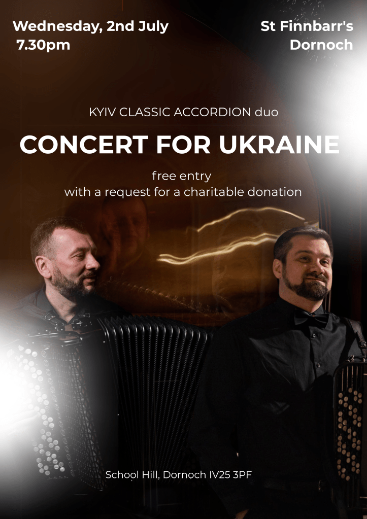 KYIV ACCORDION CONCERT – 2nd July 2025 Image 24/06/2025 Simon Scott Events, News Share this: Click to share on Facebook (Opens in new window) Facebook Click to share on X (Opens in new window) X Click to email a link to a friend (Opens in new window) Email More Click to print (Opens in new window) Print Like Loading...